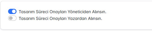 Tasarımcılar tarafından tamamlanan kapak veya iç tasarım çalışmaları, onay/red/düzeltme adımlarına yönlendirilir. Bu adımların kime iletileceği, ayarlar sekmesinde yapılan tercihe göre değişmektedir: